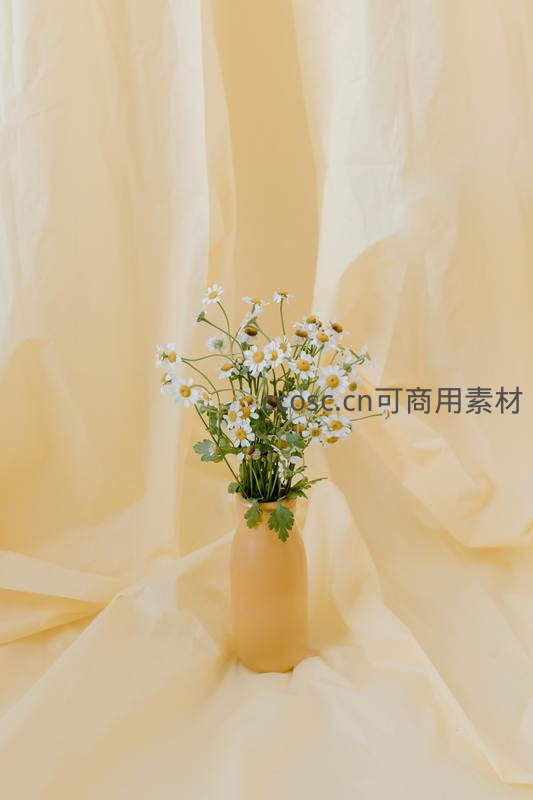 淡黄布景中雏菊静置花瓶,简约美学享受