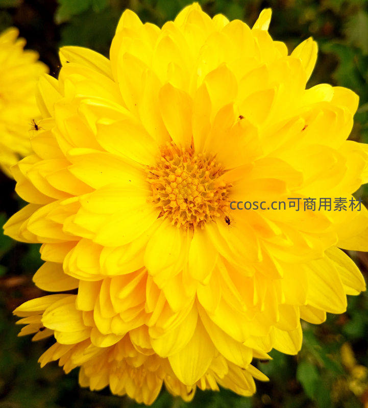 金黄菊花特写吸引小飞虫