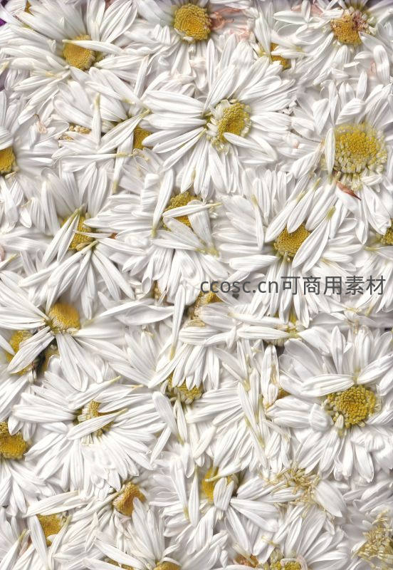 无数洁白的雏菊紧密排列,形成一片无垠的白色花海,黄色花心星星点点,带来视觉上的纯净感与自然的韵律美。