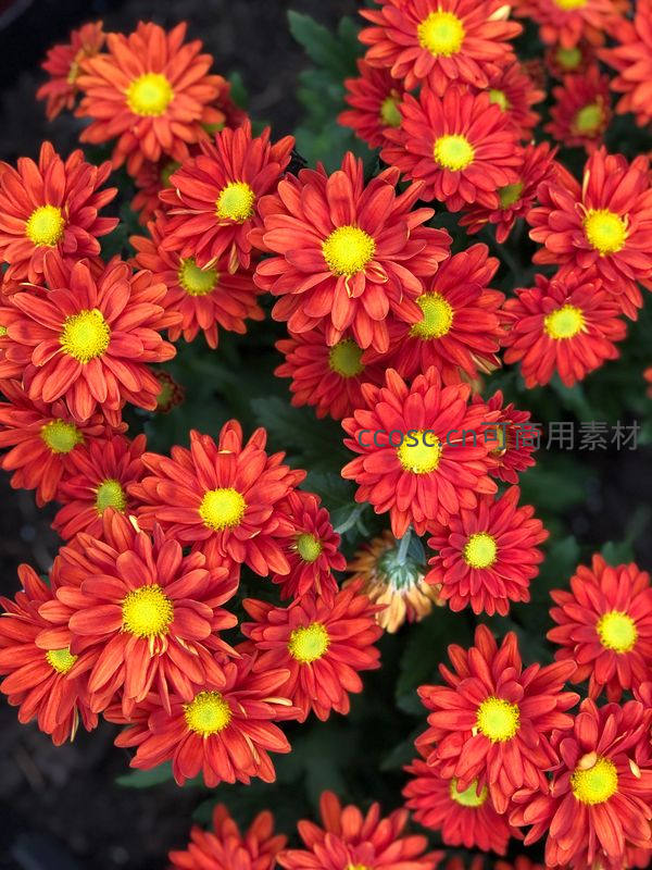 鲜艳橙红菊花密集绽放,黄蕊夺目耀眼