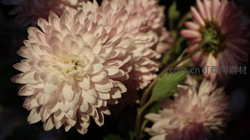 柔美粉菊特写,花瓣层层叠叠绽放