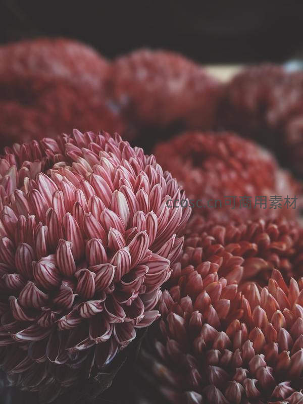 近距离捕捉粉紫色菊花的细腻纹理,层层叠叠的花瓣在柔和光线下展现出丰富的层次感和自然的生命力。