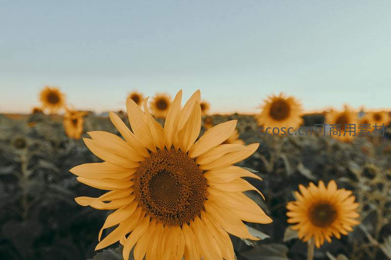 夕阳下田野中盛开的向日葵