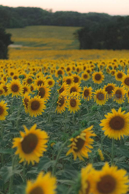 金色向日葵花海在黄昏中绽放