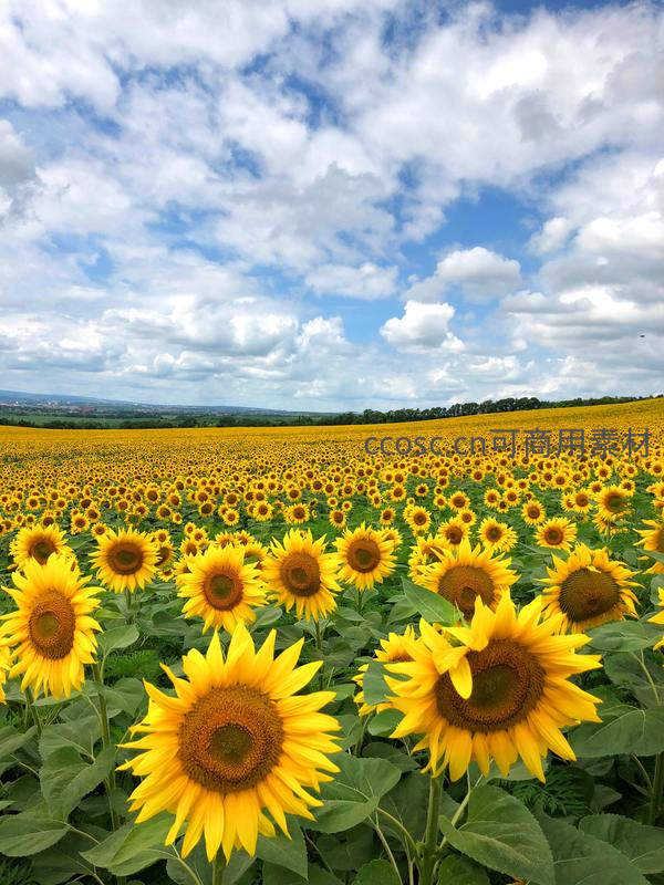 蓝天白云下浩瀚向日葵花田,生机无限