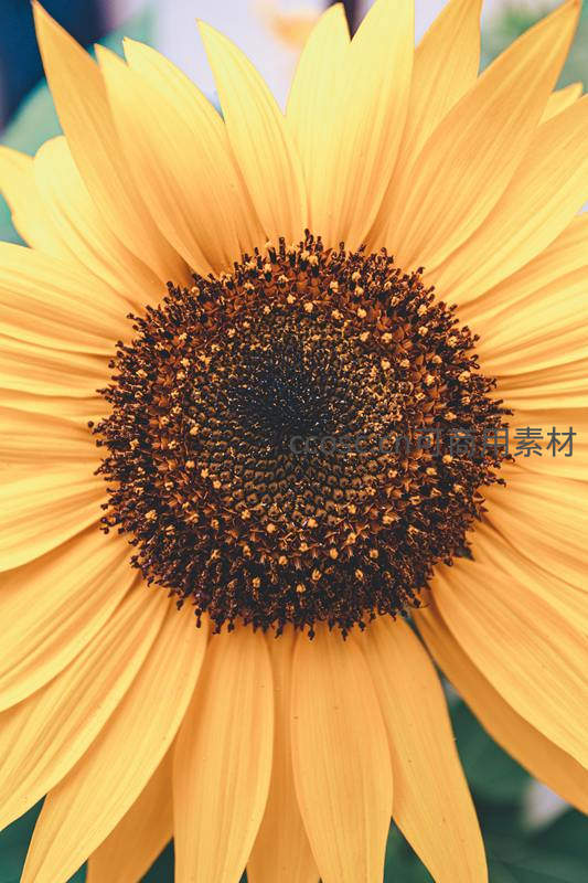 采用对称构图拍摄的向日葵中心,展现其精密排列的花蕊和放射状花瓣,充满几何美感与自然韵律。