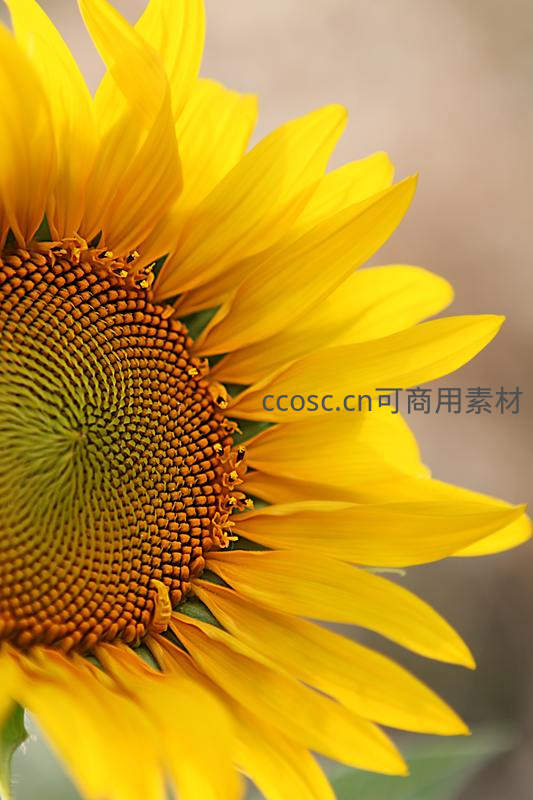 镜头聚焦于向日葵花盘中心,清晰展现其螺旋排列的种子与细腻的绒毛质感,呈现大自然精妙的几何美学。