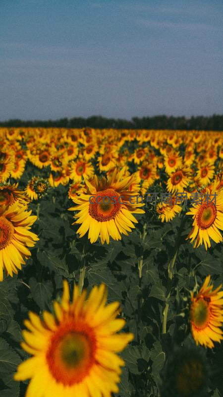 无边无际的向日葵花田在晴朗的蓝天下铺展开来,每一朵花都昂首向着阳光,构成了一幅充满希望与生命力的壮丽夏日田园画卷。