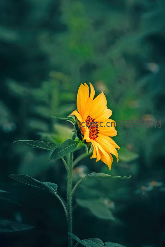 一朵盛开的向日葵在深绿色背景的衬托下格外醒目,金黄的花瓣与深色花盘形成鲜明对比,充满生命力与希望。