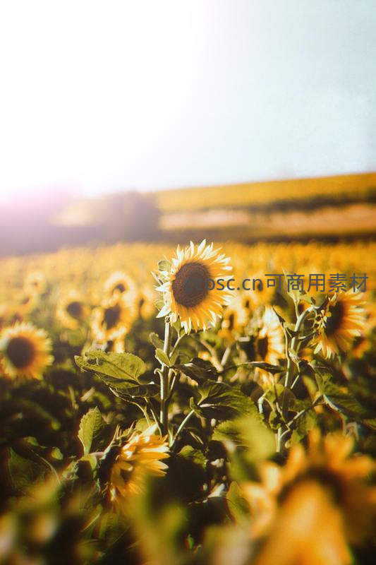 广阔的向日葵花田沐浴在清晨的金色阳光下,花朵随风轻摆,远处山丘轮廓朦胧,构成一幅宁静而壮丽的田园画卷。