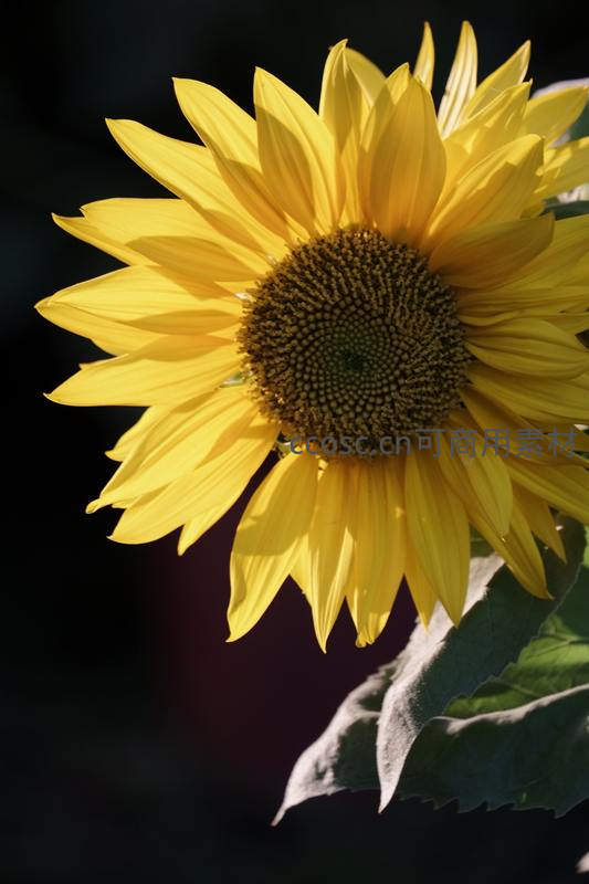 在深色背景下,一株向日葵被侧光勾勒出明亮的金黄轮廓,花瓣层次分明,营造出宁静而富有艺术感的视觉效果。
