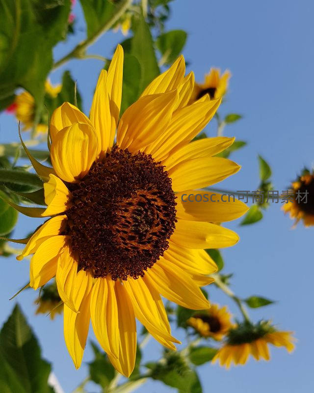 蓝天映衬下的向日葵,仰拍视角展现阳光活力
