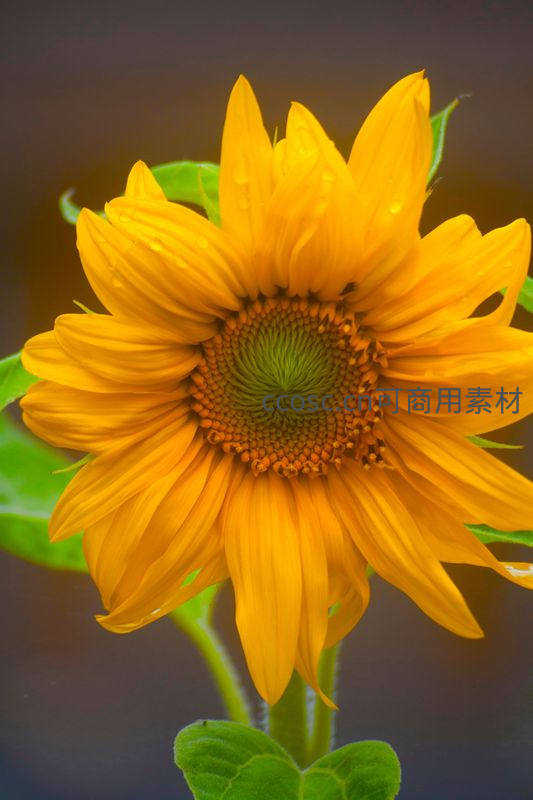 通过微距镜头捕捉到向日葵花瓣上晶莹的露珠,细腻展现花蕊结构与水珠折射的光影,突显自然生命的精致与纯净。