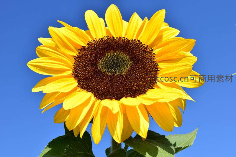 一朵盛开的向日葵在湛蓝天空背景下被特写捕捉,花瓣鲜黄饱满,花盘纹理清晰,展现出大自然的生命力与纯粹之美。