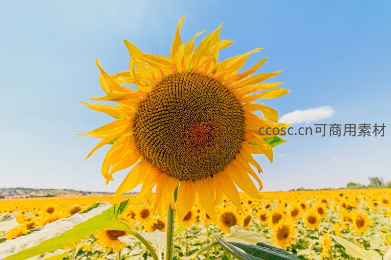 单朵向日葵特写,背景是无垠花海