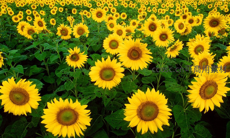 一望无际的向日葵花田如金色海洋般铺展,每一朵都朝向太阳,绿叶与黄花交织成壮阔的自然景观,洋溢着丰收的喜悦与生机。