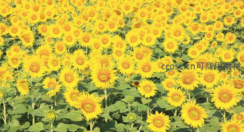 从高处俯瞰,连绵不绝的向日葵形成一片金色的海洋,整齐排列的花盘在阳光下熠熠生辉,展现出大自然的磅礴之美。