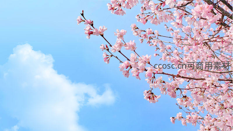 粉樱枝头斜伸向蔚蓝晴空