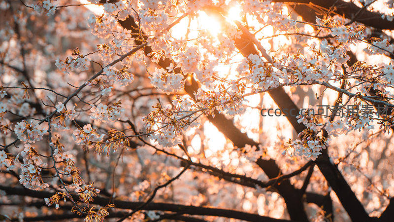 夕照穿樱枝,金辉映花海