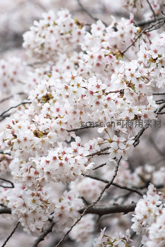 洁白如雪的樱花密集覆盖枝头,每朵小花精致玲珑,枝干交错构成自然画卷,生动呈现春季万物复苏、花开满树的盛景。