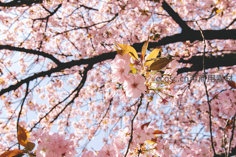仰望满树粉樱,春日烂漫如画
