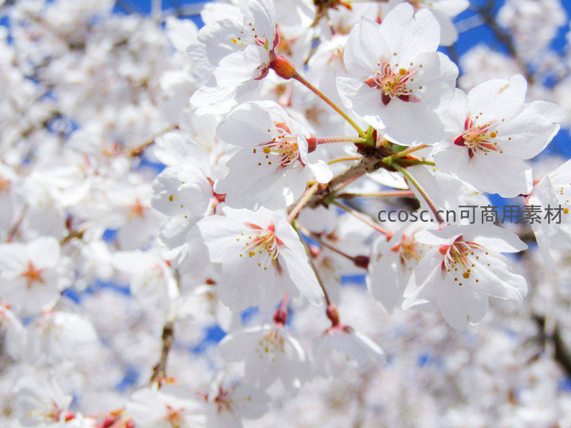 洁白无瑕的樱花在蔚蓝天空的映衬下显得格外纯净,每一朵都舒展着花瓣,散发着春天特有的明快与活力。
