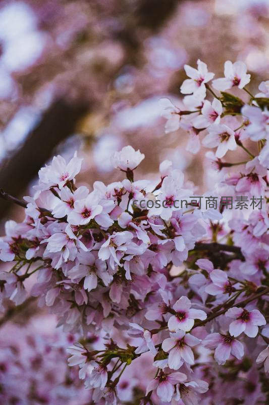 淡粉色的樱花紧密簇拥,柔和的光线映照其上,宛如天边云霞,细腻的花瓣纹理和层次感展现出自然的精致与温柔。