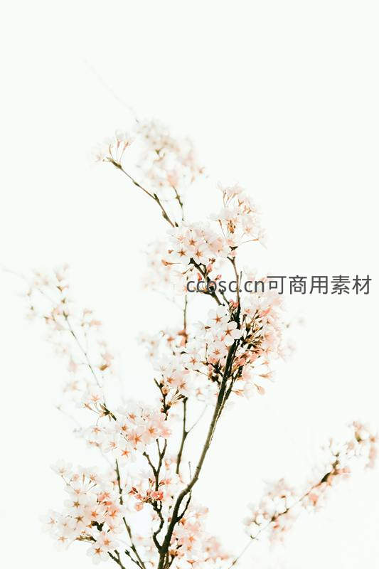 浅色樱花在纯白背景下呈现极简美学,花瓣轻盈朦胧,枝条纤细优雅,传递宁静、纯净与文艺气息。