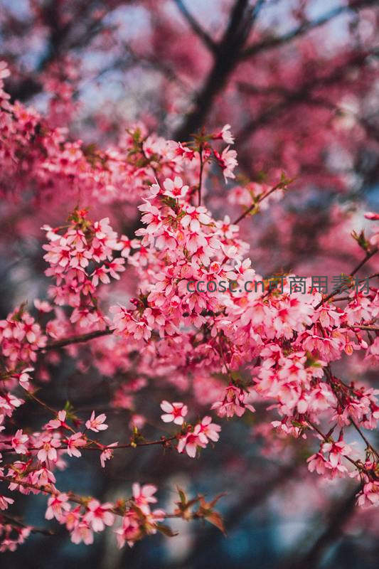 深粉色的樱花热烈地开满枝头,色彩浓郁饱满,充满生命力,仿佛整个春天的热情都凝聚在这片花海之中,令人陶醉。
