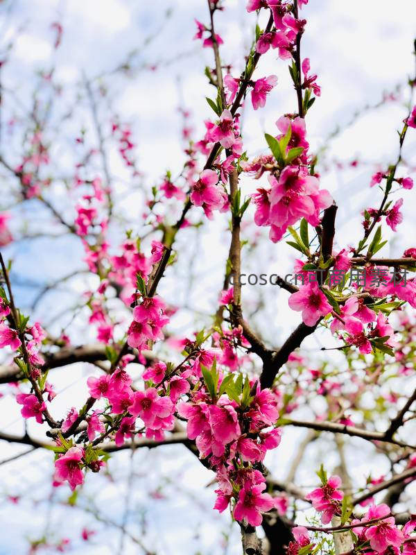 桃枝绽放粉红娇艳花朵