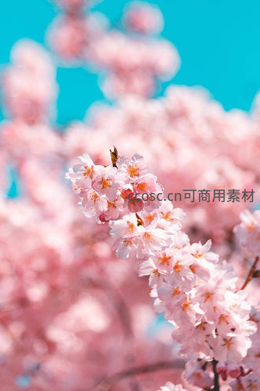 粉樱绽放,蓝天映衬春日美景