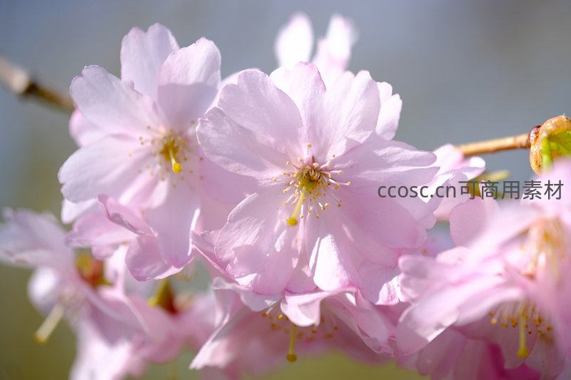 柔和的光线洒在盛放的粉色樱花上,花瓣晶莹剔透,花蕊清晰可见,营造出宁静而唯美的春日视觉享受。