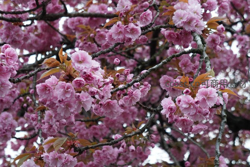 粉红重瓣樱花如云霞般绚烂盛开