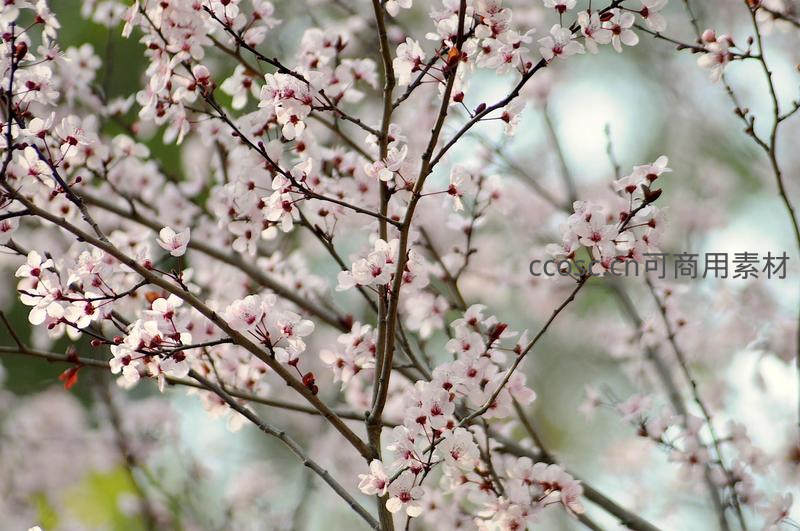 疏影横斜的淡粉桃花枝