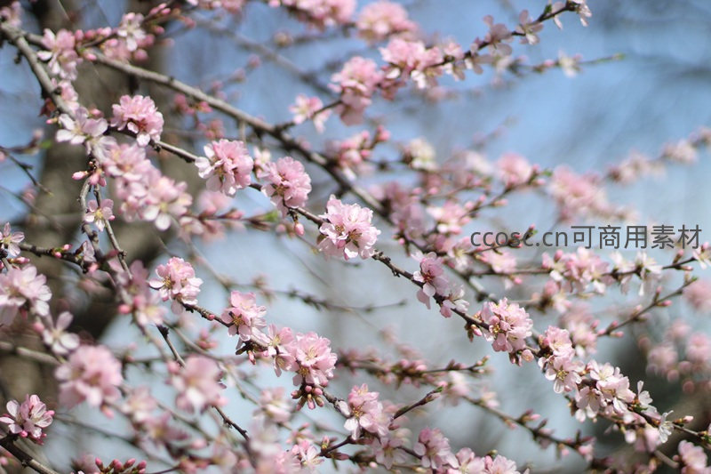 淡蓝色的天空下,无数粉嫩的桃花缀满枝头,层层叠叠,如云似霞,展现出春天最绚烂的色彩与无尽的活力。