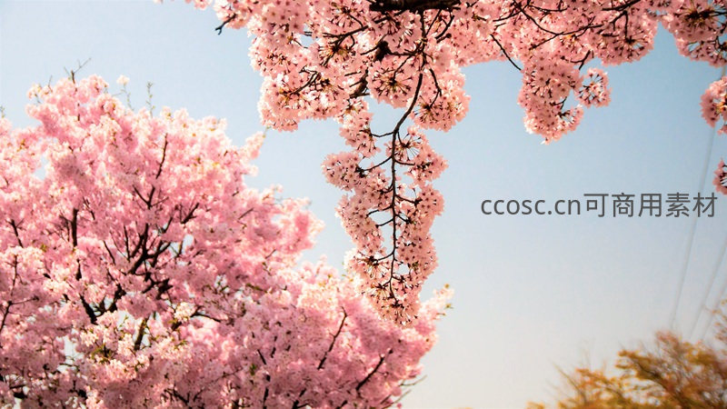 粉嫩的樱花在晴朗的蓝天下绚烂绽放,繁花似锦,枝条交错,构成一幅充满生机与诗意的春日画卷,令人心旷神怡。