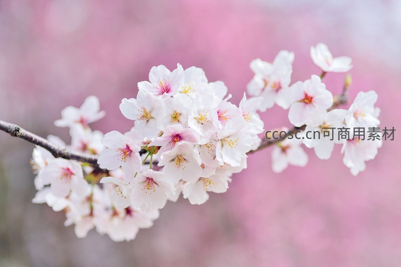 洁白的樱花缀满枝头,背景是朦胧的粉色花海,整体画面纯净唯美,传递出宁静祥和的春日气息。