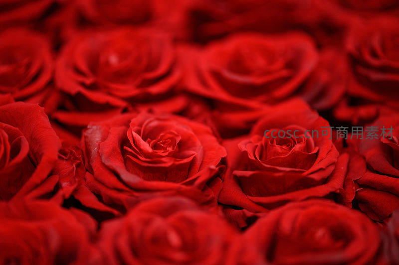 无数朵鲜艳欲滴的红色玫瑰紧密排列,形成一片无边无际的花海,强烈的色彩和密集的构图带来震撼的视觉冲击,充满浪漫与热情。