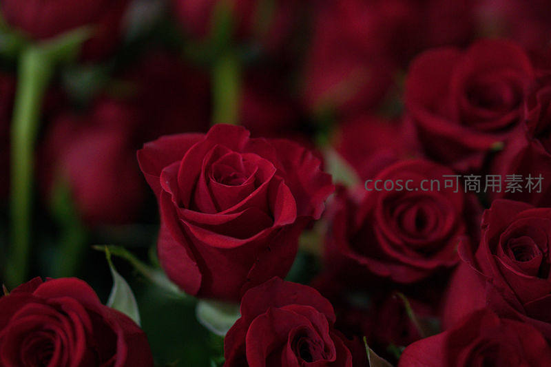 多朵深红色玫瑰紧密簇拥,色彩浓郁饱满,充满热情与爱意,是表达浓烈情感与庆祝时刻的理想选择。
