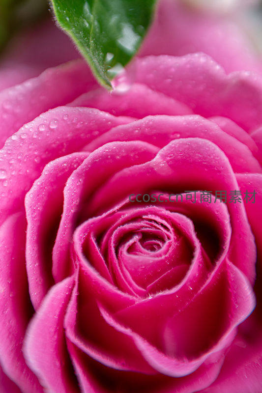 粉玫瑰花瓣特写,露珠点缀如梦似幻