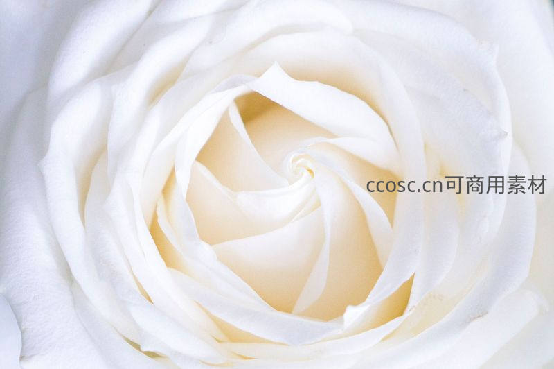 镜头深入一朵纯白玫瑰的花心,层层花瓣如漩涡般向内旋转,细腻的纹理与柔和的光线交织,展现极致的纯净与精致。