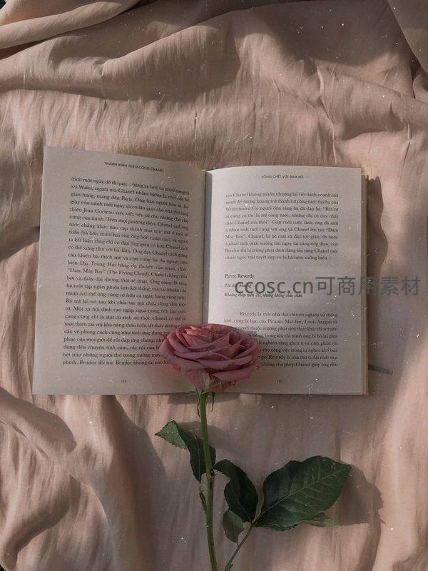 一朵粉嫩玫瑰轻置于摊开的书页上,阳光透过窗棂洒下斑驳光影,营造出充满书香与诗意的静谧午后阅读时光。