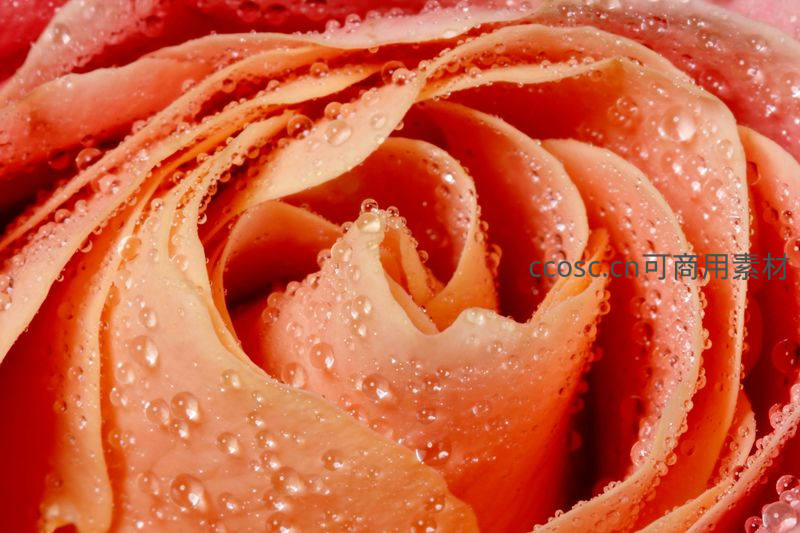 水珠点缀的玫瑰花瓣特写