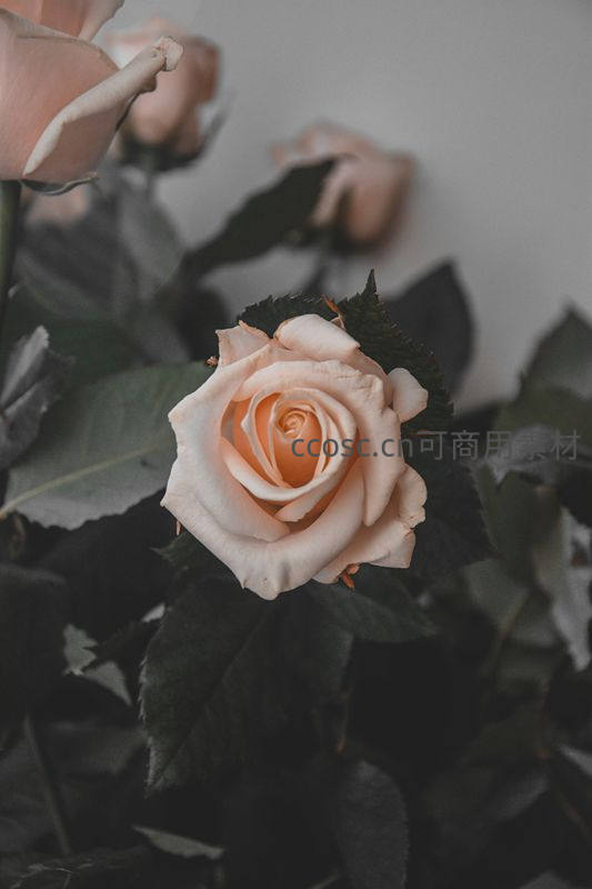 淡雅玫瑰在绿叶中绽放