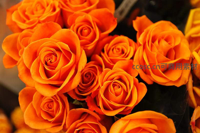 一簇橙色玫瑰紧密排列,每朵都绽放着饱满的花瓣,色彩如火焰般热烈,象征着热情与活力,适合用于婚礼、庆典等场合,带来温暖与喜悦。
