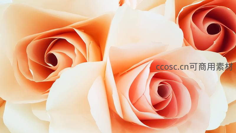 镜头聚焦于几朵盛开的橙白渐变玫瑰,细腻的花瓣层层叠叠,光影柔和,展现出花朵如丝绸般柔滑的质感与生命的精致。