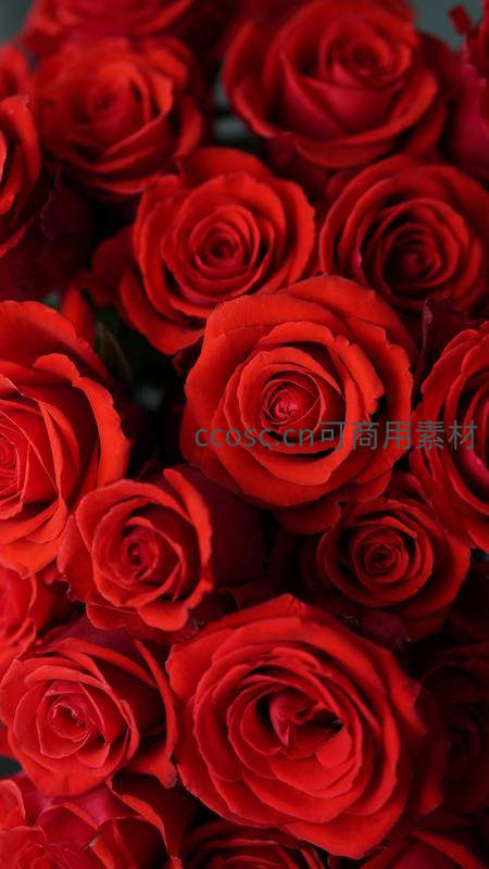 无数朵饱满的深红色玫瑰紧密排列,形成一片浓烈的花海。镜头聚焦于花瓣的细腻纹理和层叠结构,强烈的色彩带来视觉冲击,象征着炽热的爱情与激情。