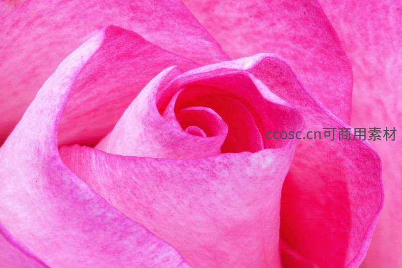 镜头深入粉红玫瑰花心,捕捉其螺旋状排列的细腻花瓣纹理,色彩由浅至深过渡,呈现如丝绸般柔滑的视觉质感。