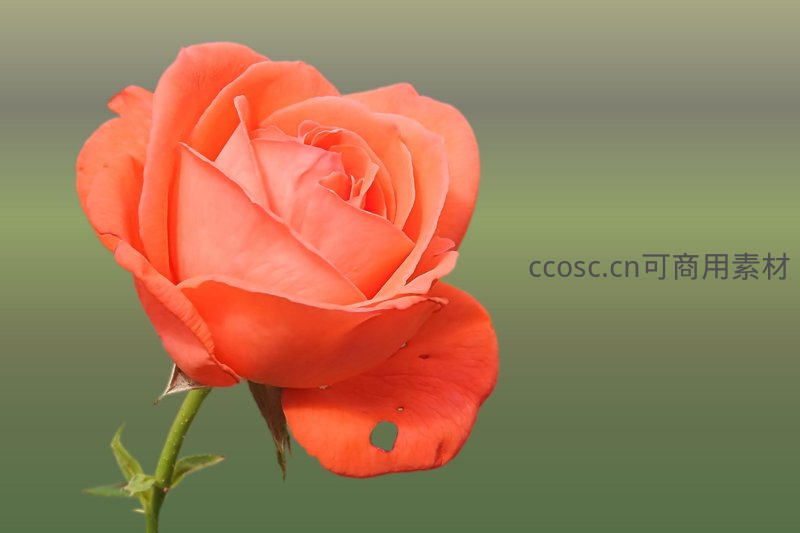 一朵盛开的橙色玫瑰在柔和绿意背景中绽放,细腻的花瓣层层叠叠,展现自然之美与生命的活力。