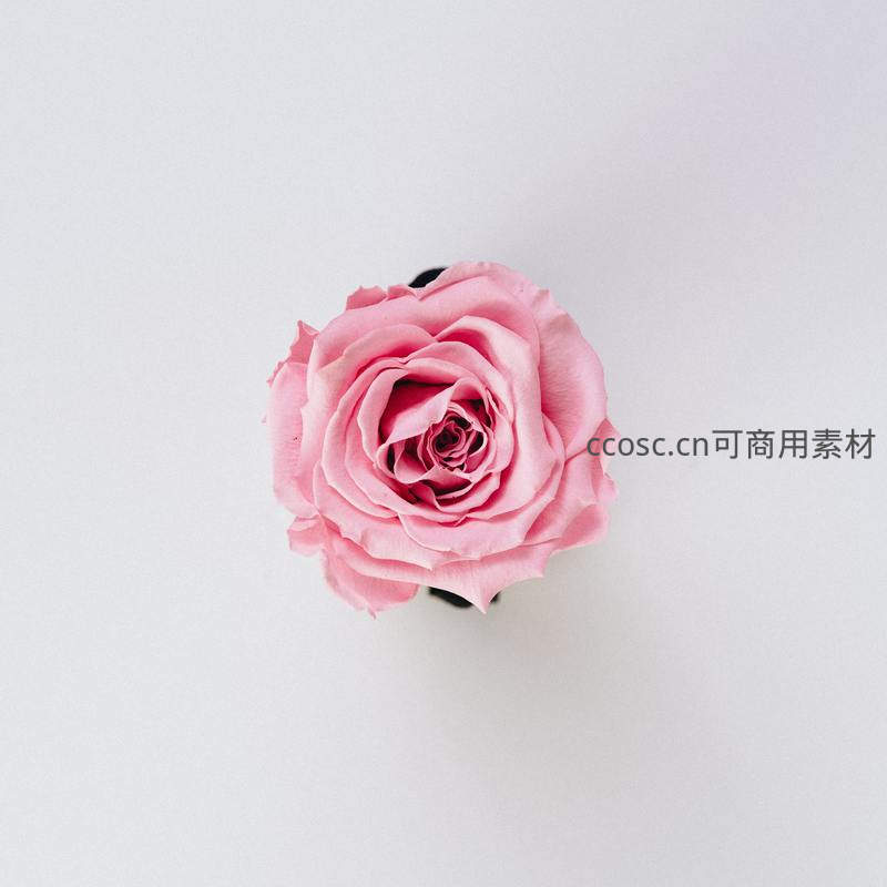 以顶视角拍摄的粉色玫瑰,花瓣层层舒展呈完美圆形,背景干净无瑕,突出花朵本身的柔美与结构美感,适合用于设计或情感表达场景。